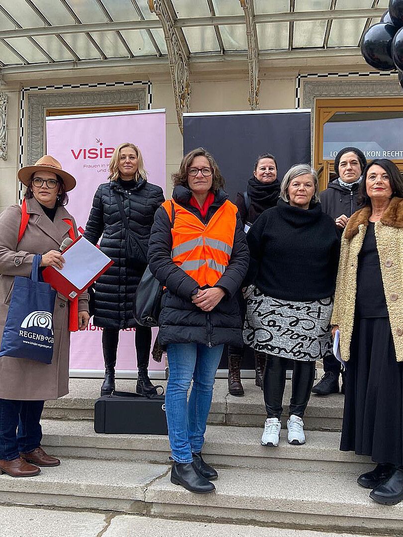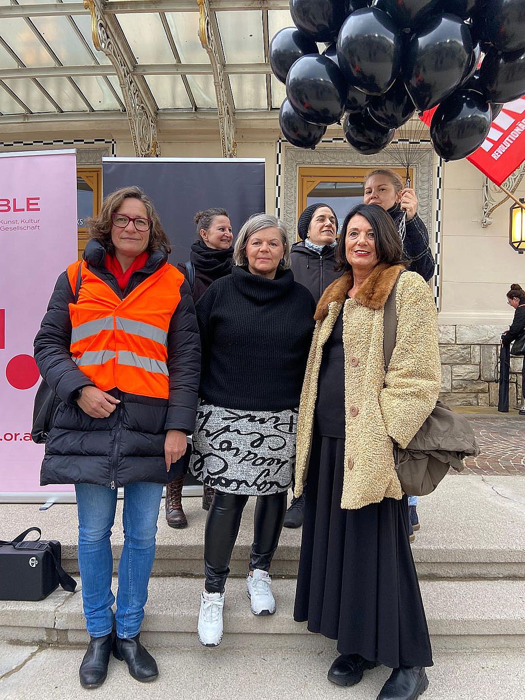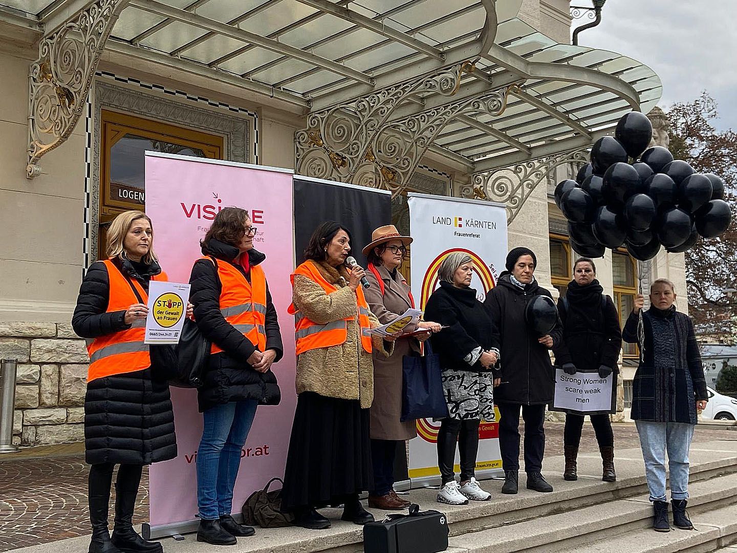 Ute Liepold, Martina Gabriel und Estha Sackl eröffneten den Marsch vor dem Stadttheater Klagenfurt. Jede von ihrem Mann getötete Frau hat einen Namen. Für jedes Opfer haben wir einen schwarzen Luftballon in den Himmel steigen lassen.