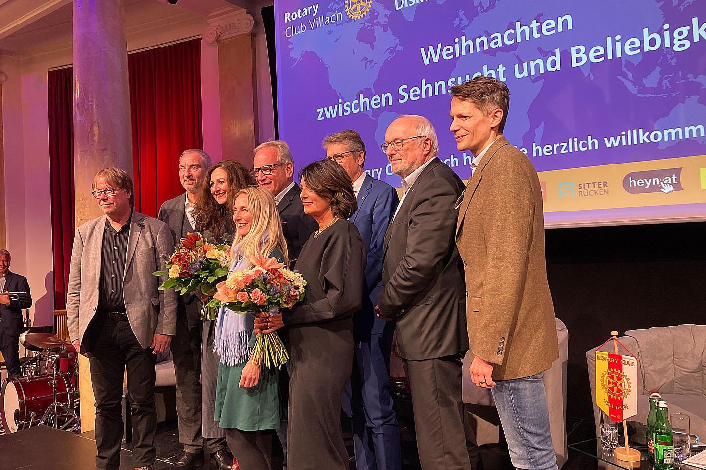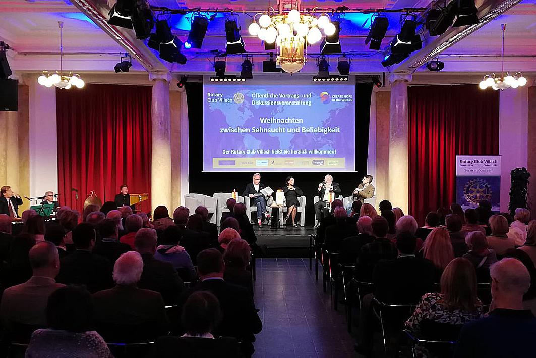 Der Rotary Club Villach lud am 4. Dezember 2023 Martin Bünker, Ute Liepold, Arnold Mettnitzer, Nadja Kayali, Richard Oswald zu einer Podiumsdiskussion in den Villacher Bambersaal ein. Mit der Frage “Wurde Maria überhaupt gefragt?” nahm Ute Liepold vor allem die Rolle der Frauen im Rahmen der angeblich besinnlichen Feierlichkeiten kritisch ins Visier.